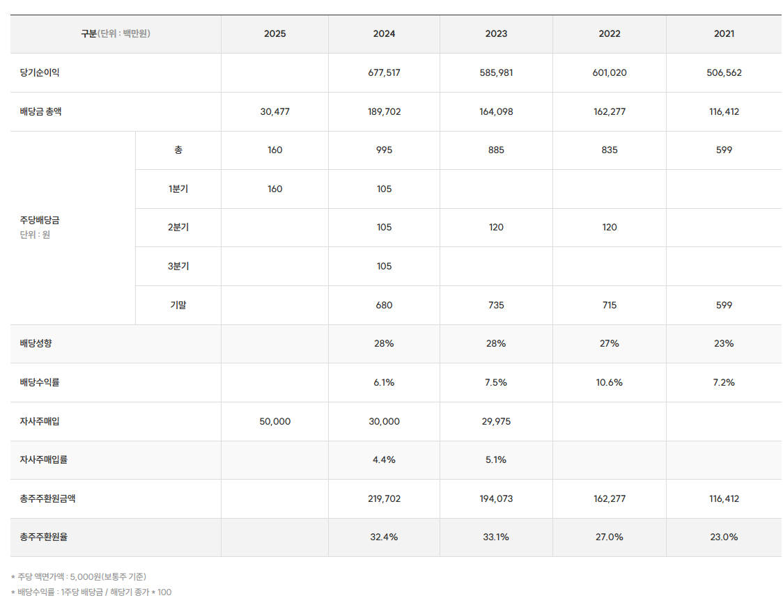 장점: 안정적인 금융 자회사 구조 + 상대적으로 높은 배당수익률이 투자자 관심 요소
