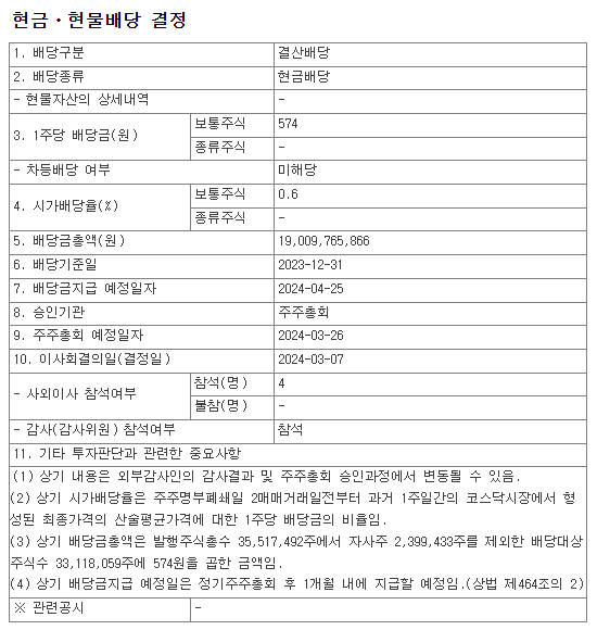 배당 조건(기준일) : 2023-12-31까지 JYP엔터테인먼트 주식 보유