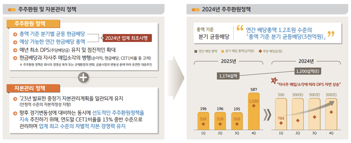 KB금융은 '24년에도 분기 배당을 실시합니다.