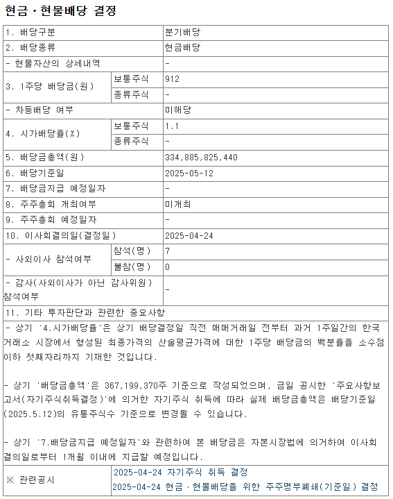 - ❗ 주주환원 정책이 일부 투자자들에게는 경쟁사 대비 약하다는 지적