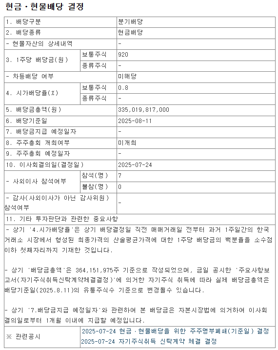 | 포스코홀딩스 2025년 2분기 배당 확정! 배당금·배당일·배당락 총정리 (0) | 2025.09.05 |