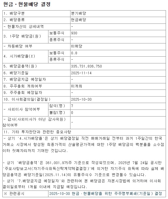 | HD현대 2025년 3분기 배당 확정! 배당금·배당일·배당락 총정리 (0) | 2025.11.03 |