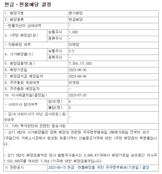 2. 2023년 KCC 배당금 (반기/중간배당)