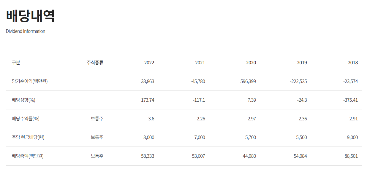 배당금 : 주당 1,000원 (주가대비 0.5%)