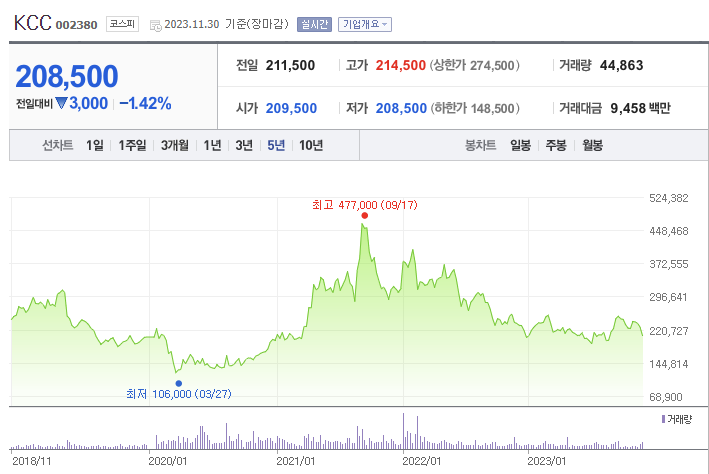 2. 2023년 KCC 배당금 (반기/중간배당)