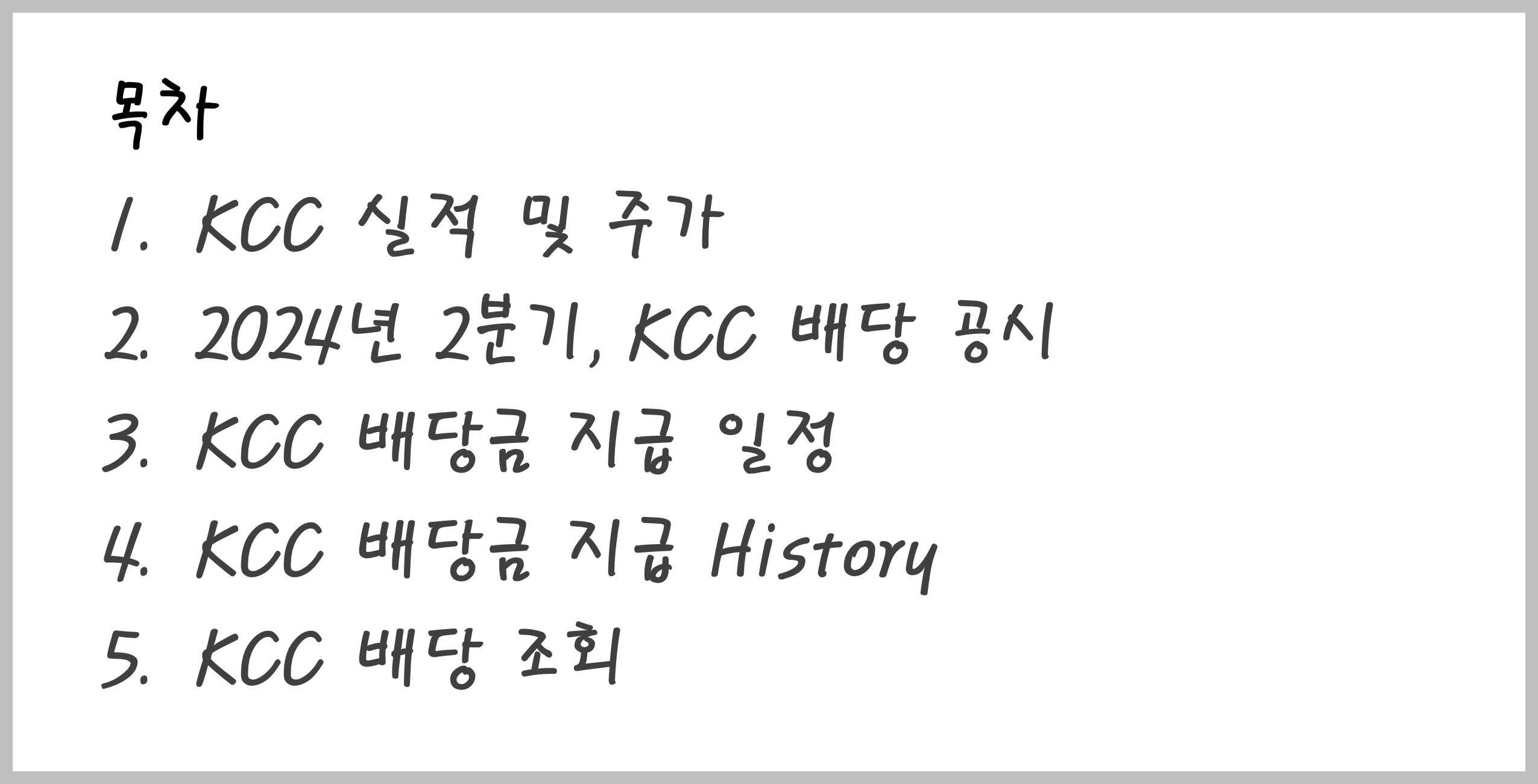 배당조회 바로가기 : https://kccworld.srpage.co.kr/main.do