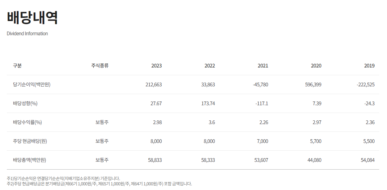 배당금 : 주당 1,000원 (주가대비 0.5%)