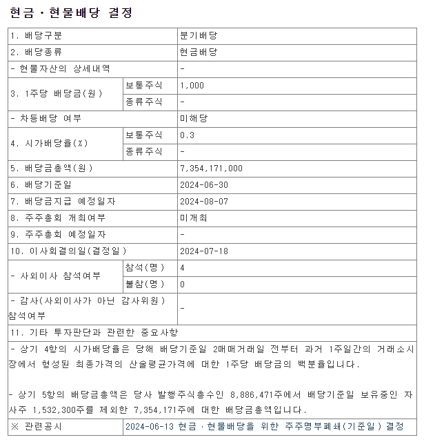 2. 2024년 KCC 배당금 (반기/중간배당)