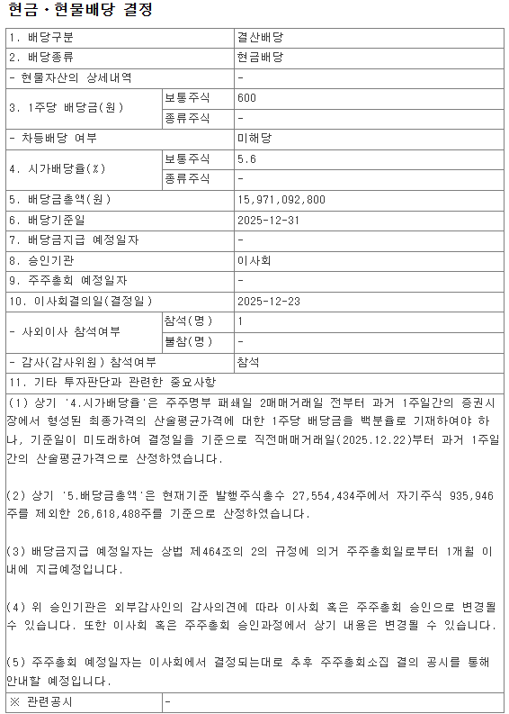 | 한솔로지스틱스 2025년 결산 배당 확정! 배당금·배당일·배당락 총정리 (0) | 2025.12.14 |