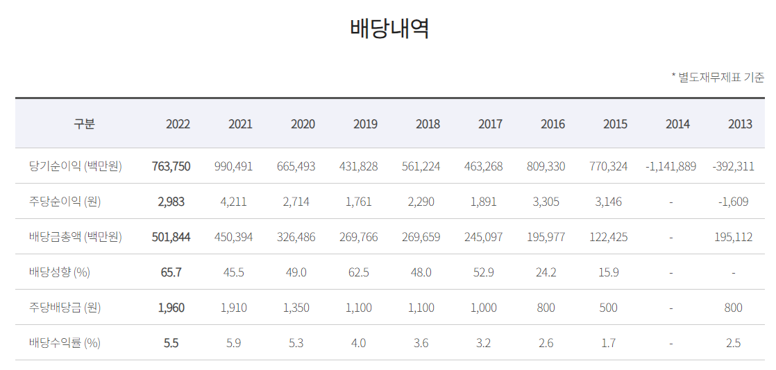 배당금 : 1,960원 (보통주)