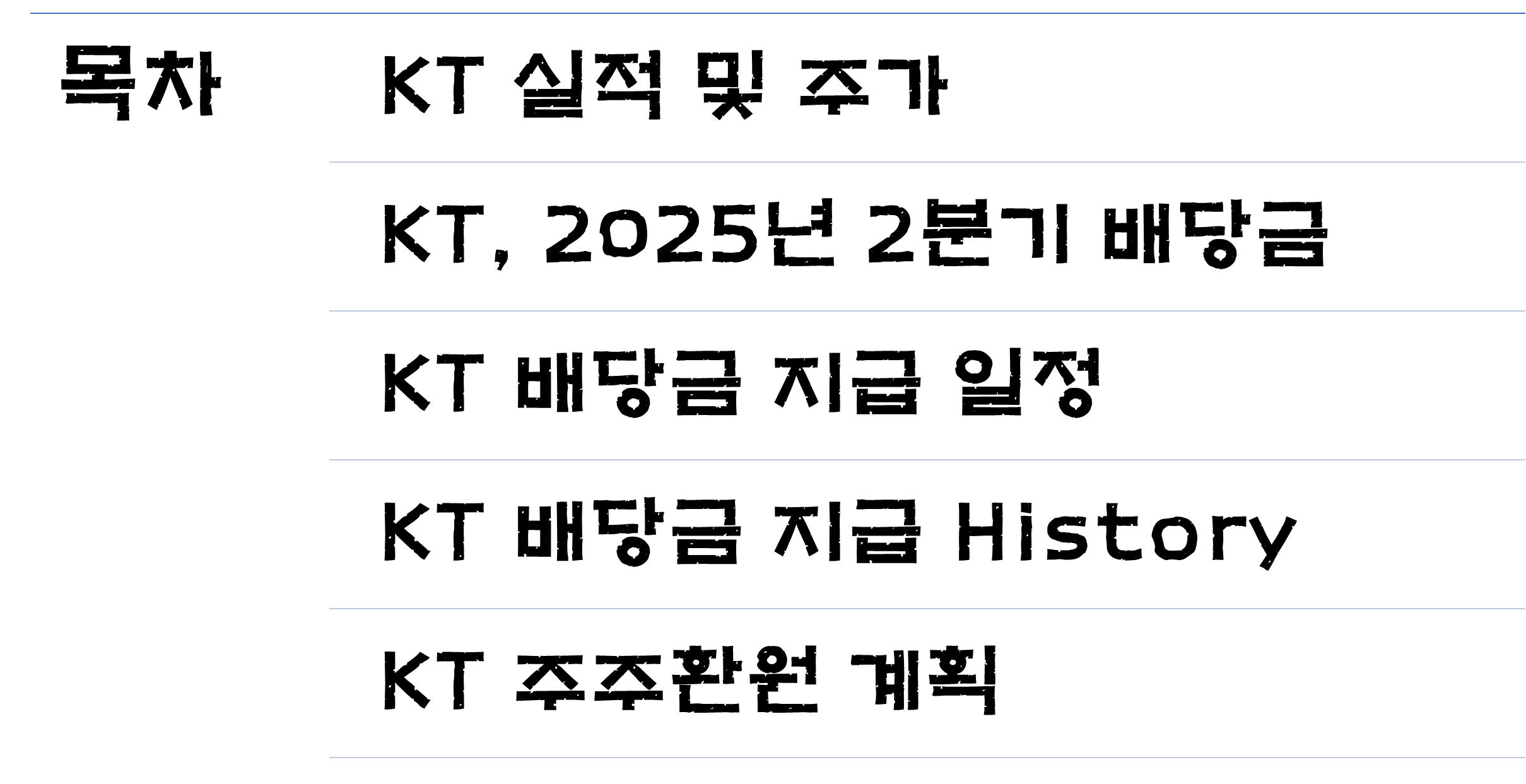 KT 2025년 2분기 배당이 확정되었습니다. 이번 배당은 많은 투자자들이 관심을 갖는 배당금, 배당일, 배당락 정보가 포함되어 있으며, 최근 실적 호조와 맞물려 더욱 주목받고 있습니다. KT는 2분기 영업이익이 전년 대비 두 배 이상 증가하며 역대 최대치를 기록했고, 이에 발맞춰 주주환원 정책도 강화하고 있습니다. 이번 글에서는 KT 2025년 2분기 배당금 확정 내역과 일정, 배당 기준일 및 지급일을 한눈에 정리해 드리며, 향후 주가 전망까지 함께 살펴보겠습니다.