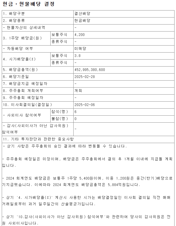배당금 : 4,200원 (보통주)