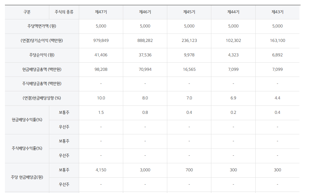 배당일 : 2024년 4월 (미정)
