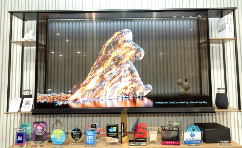 TV를 껐을 땐 검은 화면이 아니라 완벽하게 투명한 유리처럼 스크린 너머를 볼 수 있음
