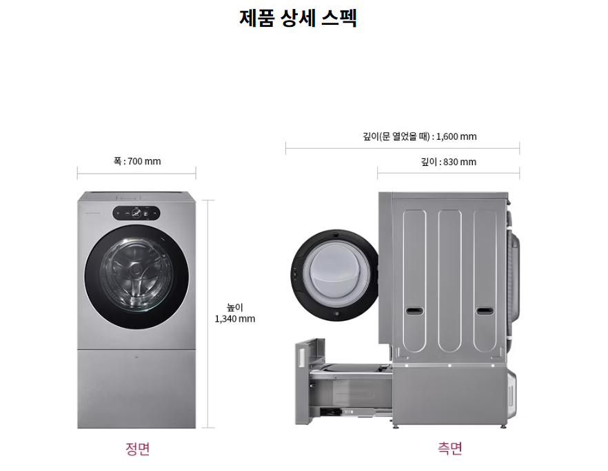 LG전자 시그니처 세탁건조기 스펙 (출처 : LG전자 공식 홈페이지)