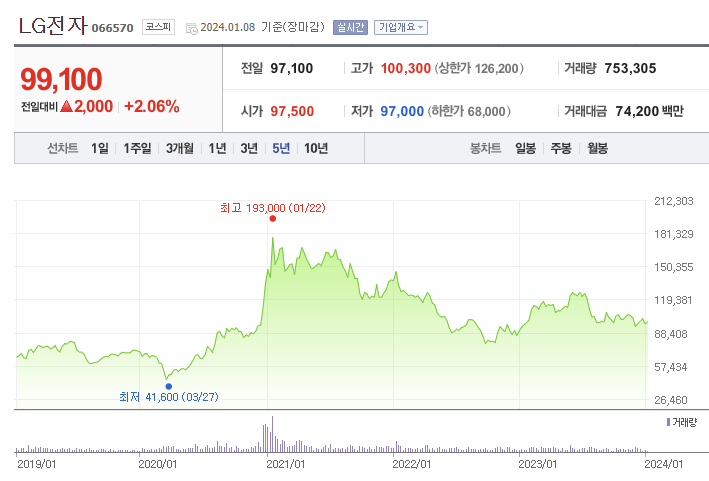 LG전자 주가 (출처 : 네이버 증권)