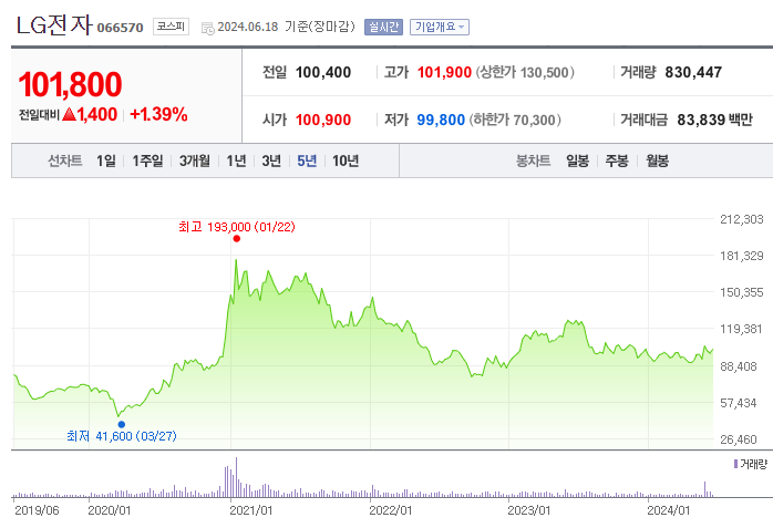 1. LG전자 주가