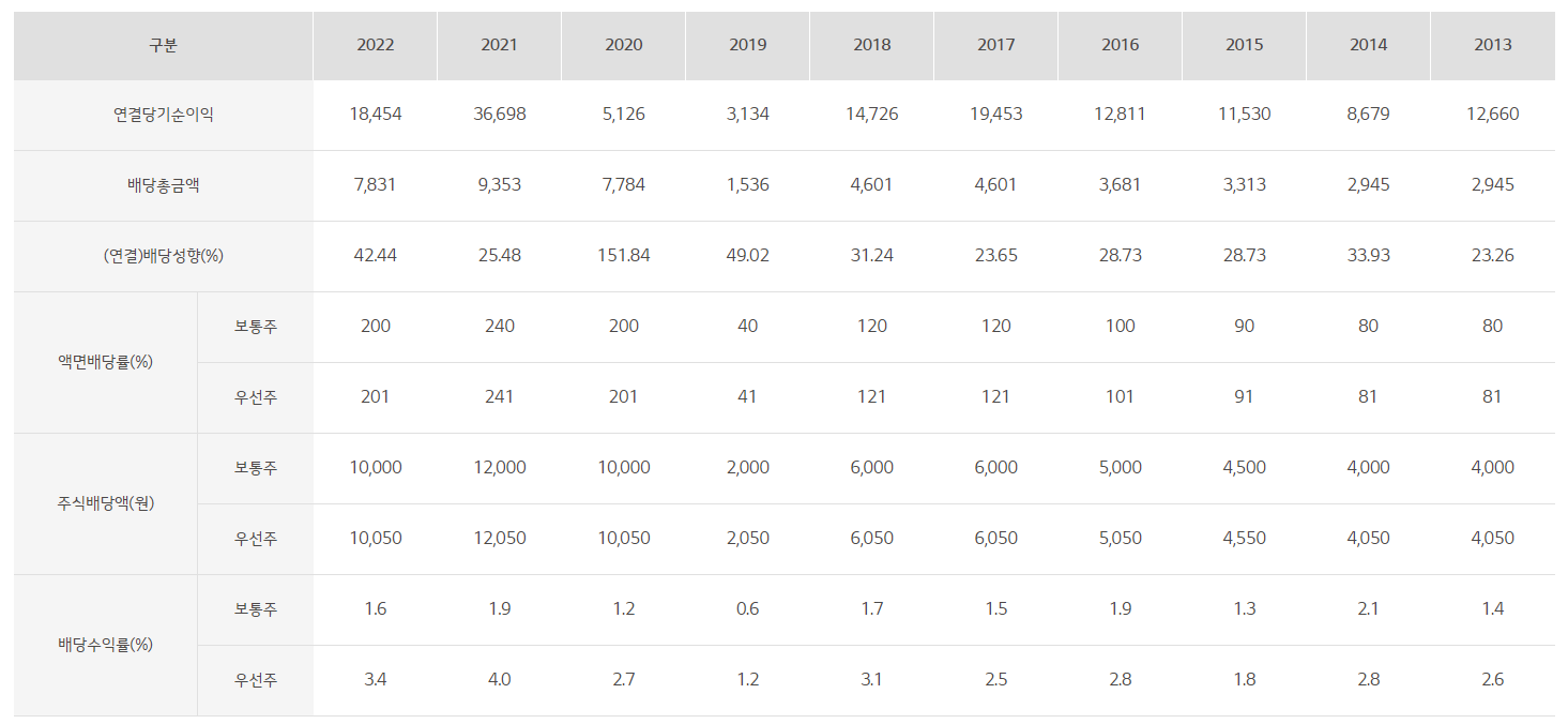 배당금 : 3,500원 (보통주) / 3,550원 (우선주)
