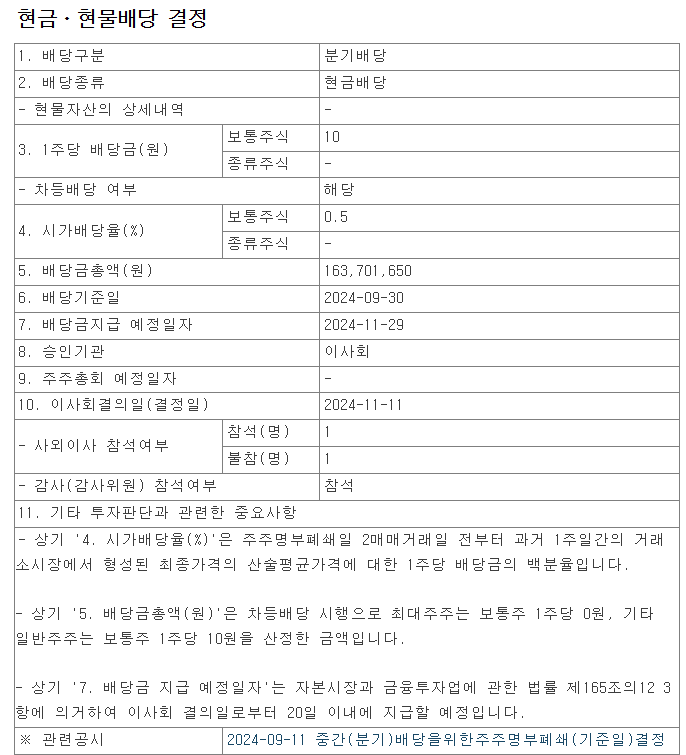 배당일 : 2024-11-29