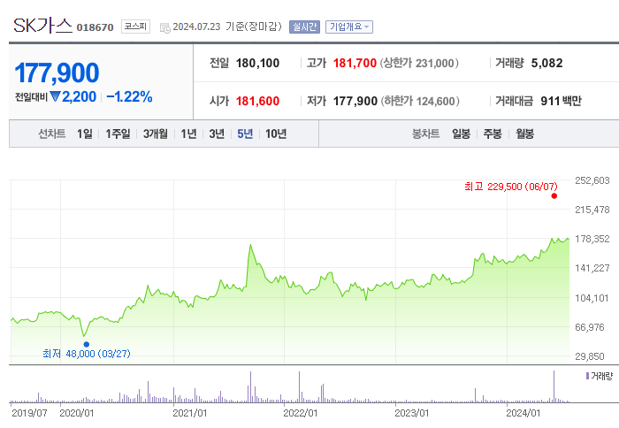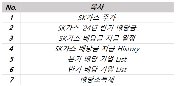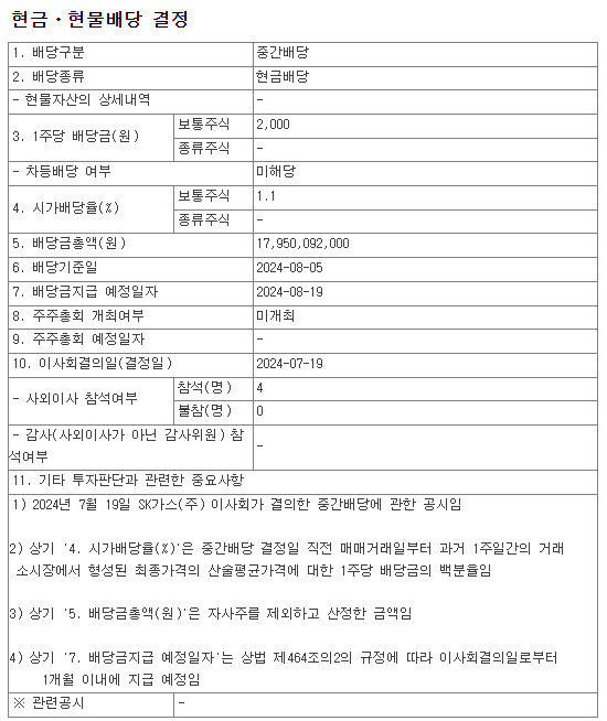 배당 조건(기준일) : 2024-08-05까지 SK가스 주식 보유