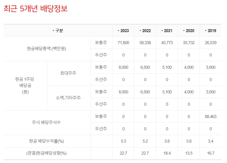 배당금은 배당소득세 15.4%가 발생하며, 배당소득세 15.4% 원천징수 후 지급됩니다.