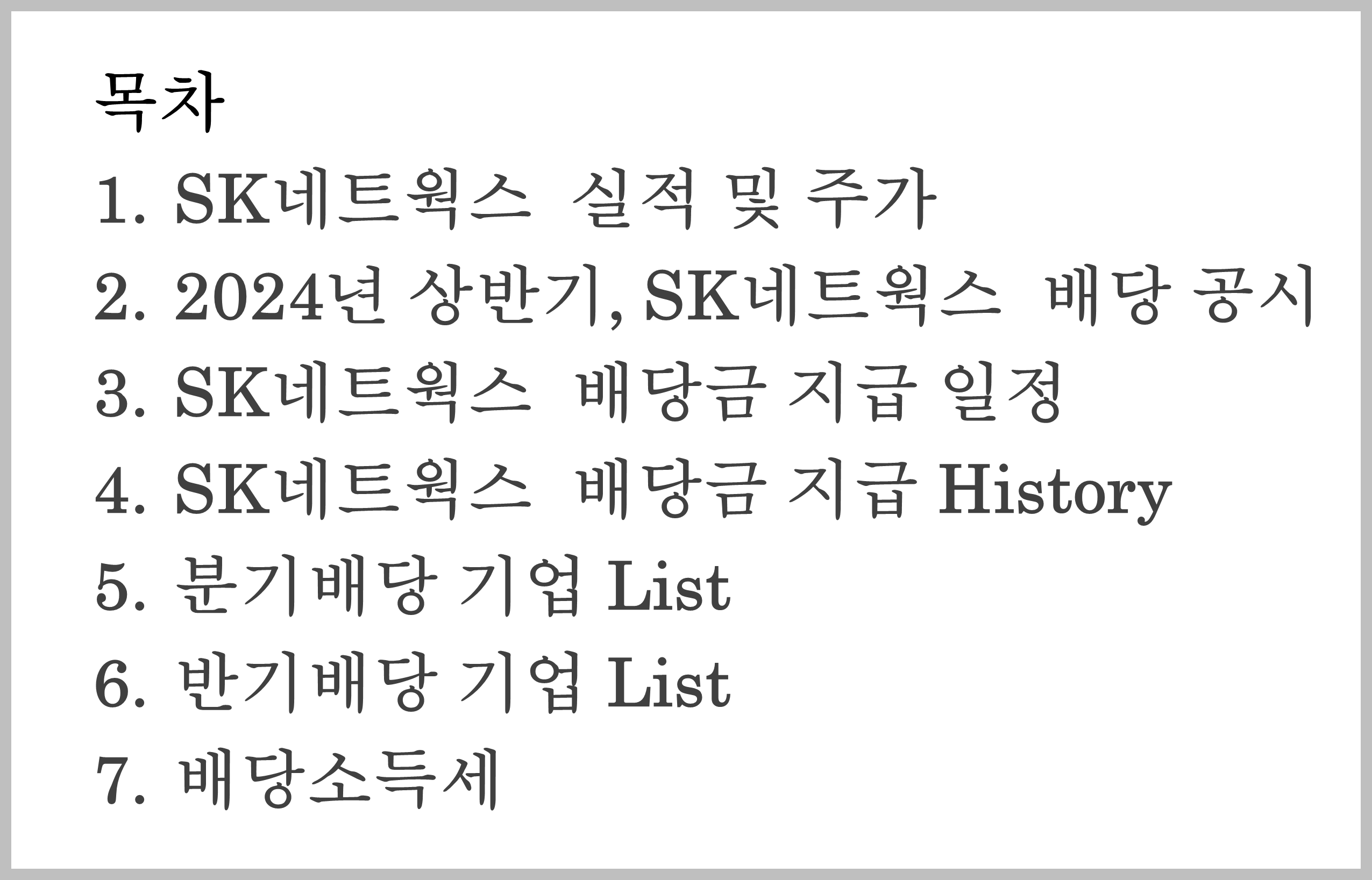 2.  2024 년 상반기 SK네트웍스 중간/반기배당