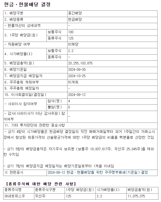 2. 2024 년 상반기 SK네트웍스 중간/반기배당