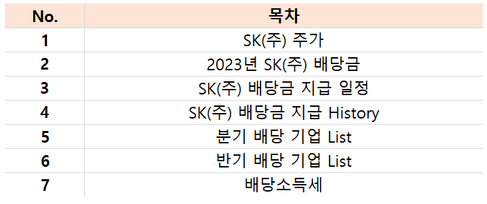 SK(주) 2023년 배당금 확정! (주가, 배당일, 배당락, 배당소득세, 분기배당, 반기배당)