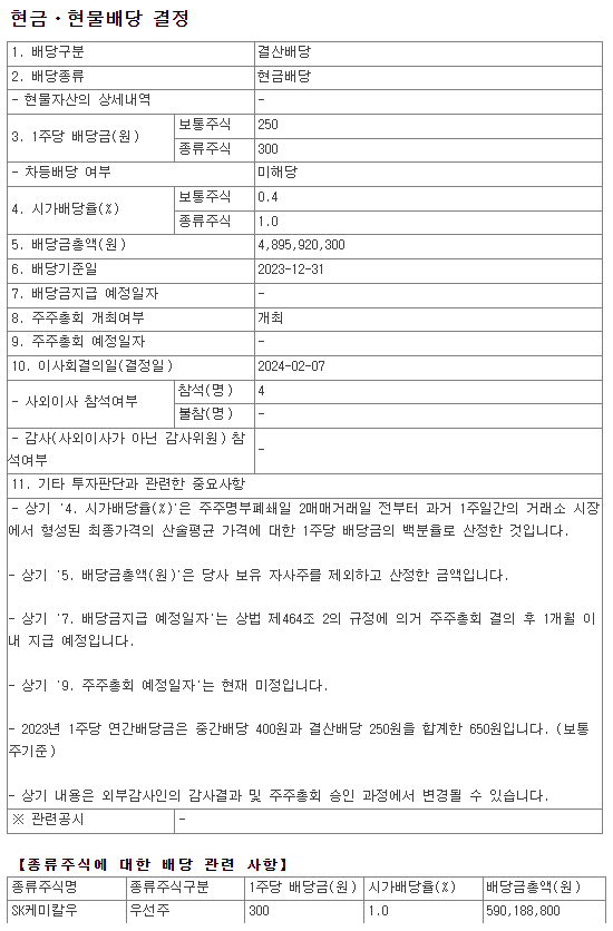 2. 2023년 SK케미칼 배당금