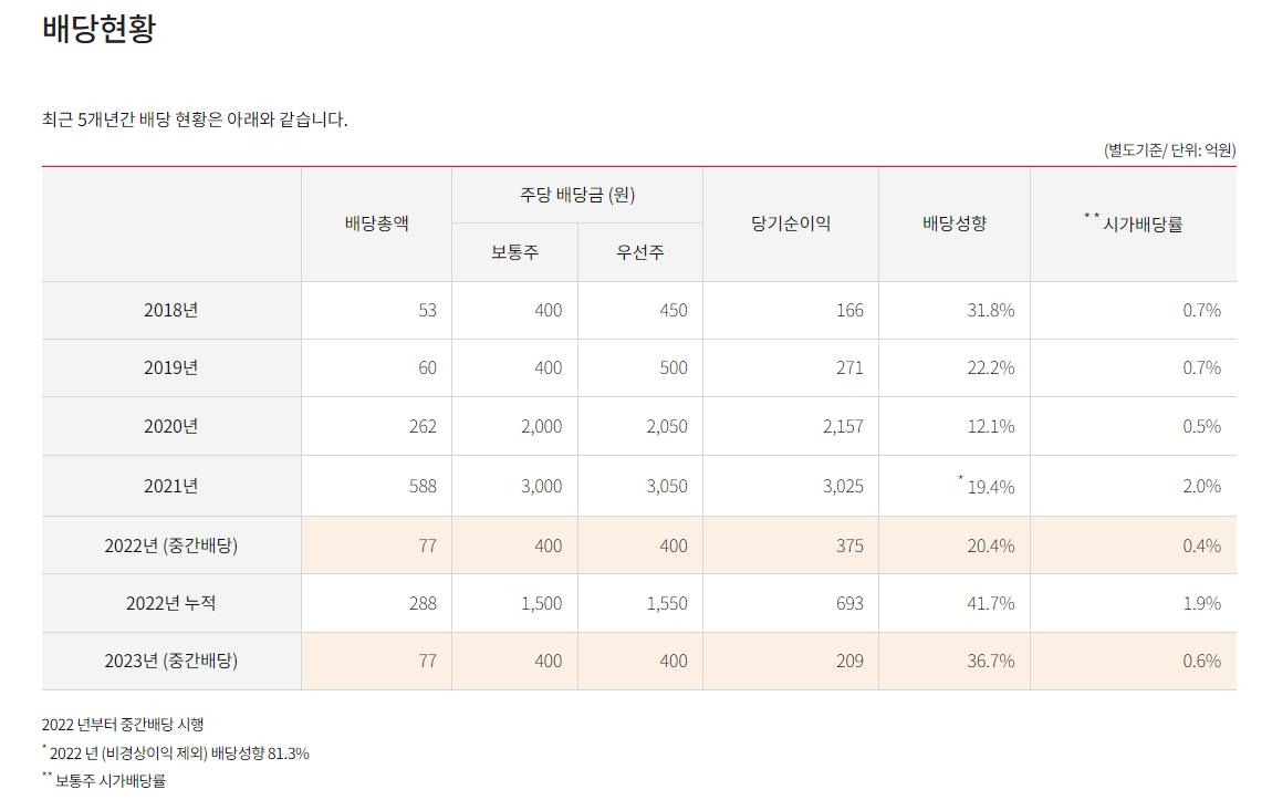 2023년 연간 배당금 (2분기, 결산 배당 진행)