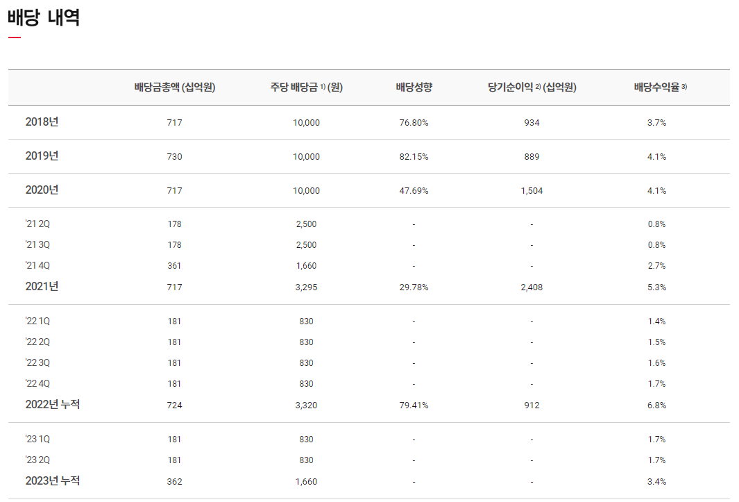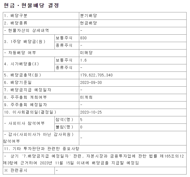 배당금 : 830원 (지난 1,2분기와 동일)