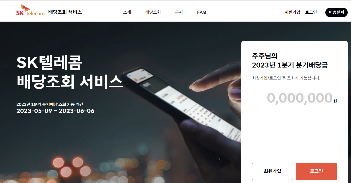 배당조회 바로가기 : https://dividend.sktelecom.com/main.do