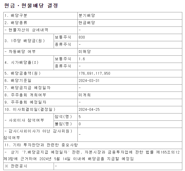 2024년 1Q 배당