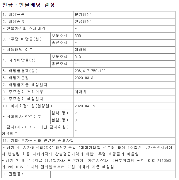 배당금 : 300원 / 주 (주가 대비 0.3%)