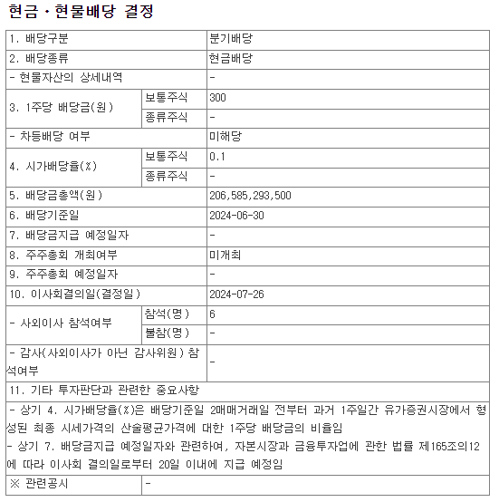 배당 조건(기준일) : 2024-06-30까지 SK하이닉스 주식 보유