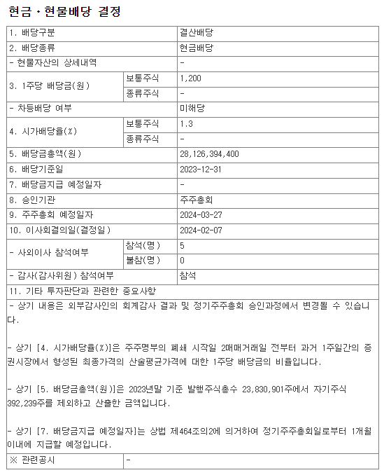 E1, 2023년 실적 및 배당금 공시! (고배당, 결산, 주가, 배당일, 지급일, 배당락) (0) | 2024.04.12 |