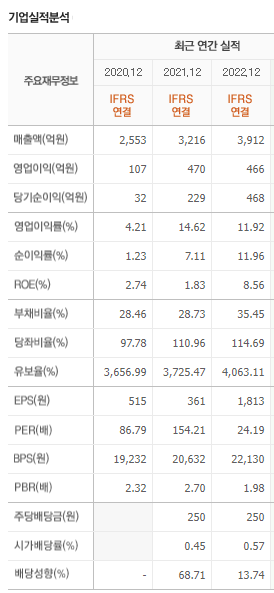 - 2023년 매출 : 5,692원 (전년대비 45.5% 증가)